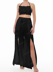 - Detail Feature: Elasticated back waistband, Side pocket, Front slit Loose fit"