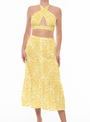 - Detail Feature: Criss cross top, Halter neck tie, Elasticated back