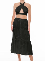 - Detail Feature: Criss cross top, Halter neck tie, Elasticated back