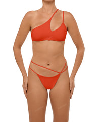 - Detail Feature: Asymmetric straps bikini bottom, O-ring detail, Low rise, Brazillian style