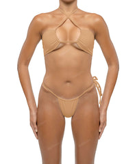 - Detail Feature: Tie bikini bottom, Brazilian style, Adjustable front and bum coverage, Adjustable one side tie closure, Low rise, High cut