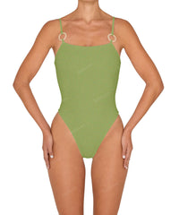 - Style: Square Neck One Piece With Rings