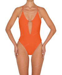 • Detail Feature: Cut-out one piece with custom hardware connector detail, high cut leg opening, adjustable straps