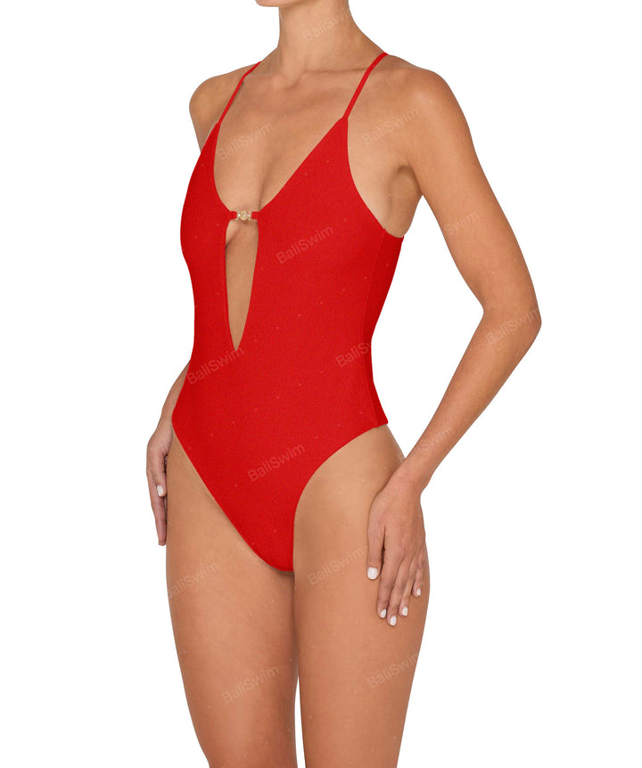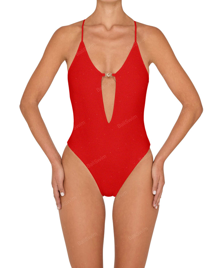 - Detail Feature: Cut-out one piece with custom hardware connector detail, high cut leg opening, adjustable straps
