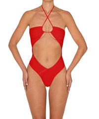 BSWS-S82 Halter Tie Neck One Piece With Center Front Cutout