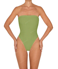 - Detail Feature: Classic strapless onepiece, high hip cut, silicon tape on the top bust to prevent slippage, and seamless finish