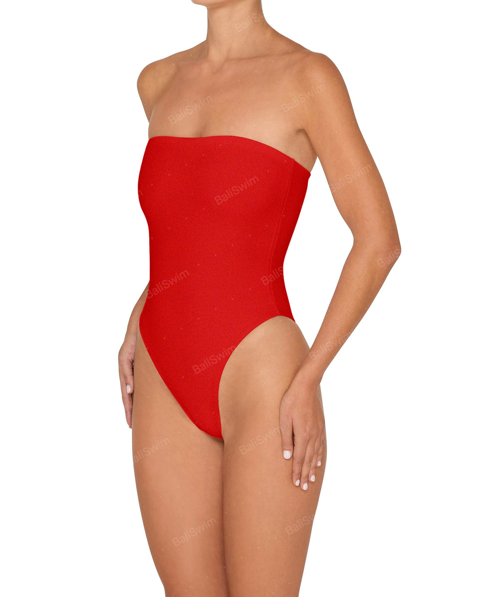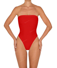 - Detail Feature: Classic strapless onepiece, high hip cut, silicon tape on the top bust to prevent slippage, and seamless finish