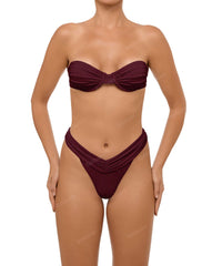 - Detail Feature: Underwire bandeau bikini top, Gathered bust detail, Clasp Closure