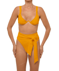 - Detail Feature: V-underwire bikini top, Fixed wide shoulder straps, Gathered bust detail, Adjustable tie closure, Bralette style