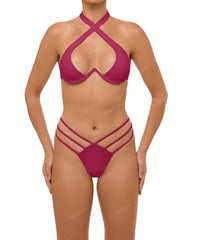 - Detail Feature: V-underwire bikini top, Crisscross halter neck, Adjustable neck tie, Pull on style