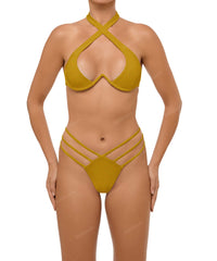- Detail Feature: V-underwire bikini top, Crisscross halter neck, Adjustable neck tie, Pull on style