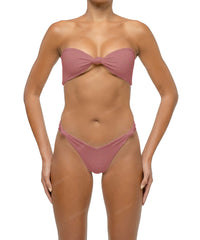 - Detail Feature: Bandeau bikini top, Sweetheart neckline, Front knottedd detail, Pull on style