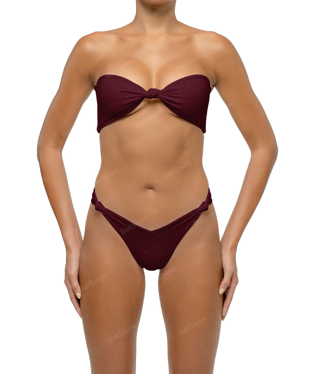 • Detail Feature: Bandeau bikini top, Sweetheart neckline, Front knottedd detail, Pull on style