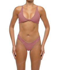 - Detail Feature: Bralette bikini top, Triangle shape, Front knotted detail, Fix underbust, Adjustable straps, Pull on style