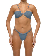 - Detail Feature: Bandeau bikini top, Adjustable shoulder straps, Rings detail, Clasp Closure