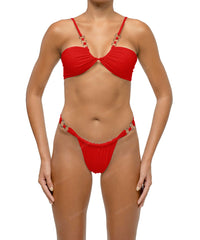 - Detail Feature: Bandeau bikini top, Adjustable shoulder straps, Rings detail, Clasp Closure