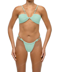- Detail Feature: Bandeau bikini top, Adjustable shoulder straps, Rings detail, Clasp Closure