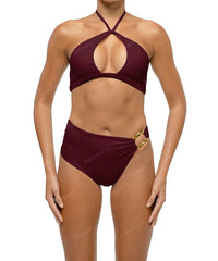 • Detail Feature: Halter bikini top, Bust cut-out detail, Twist detail, Pull on style