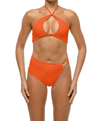- Detail Feature: Halter bikini top, Bust cut-out detail, Twist detail, Pull on style