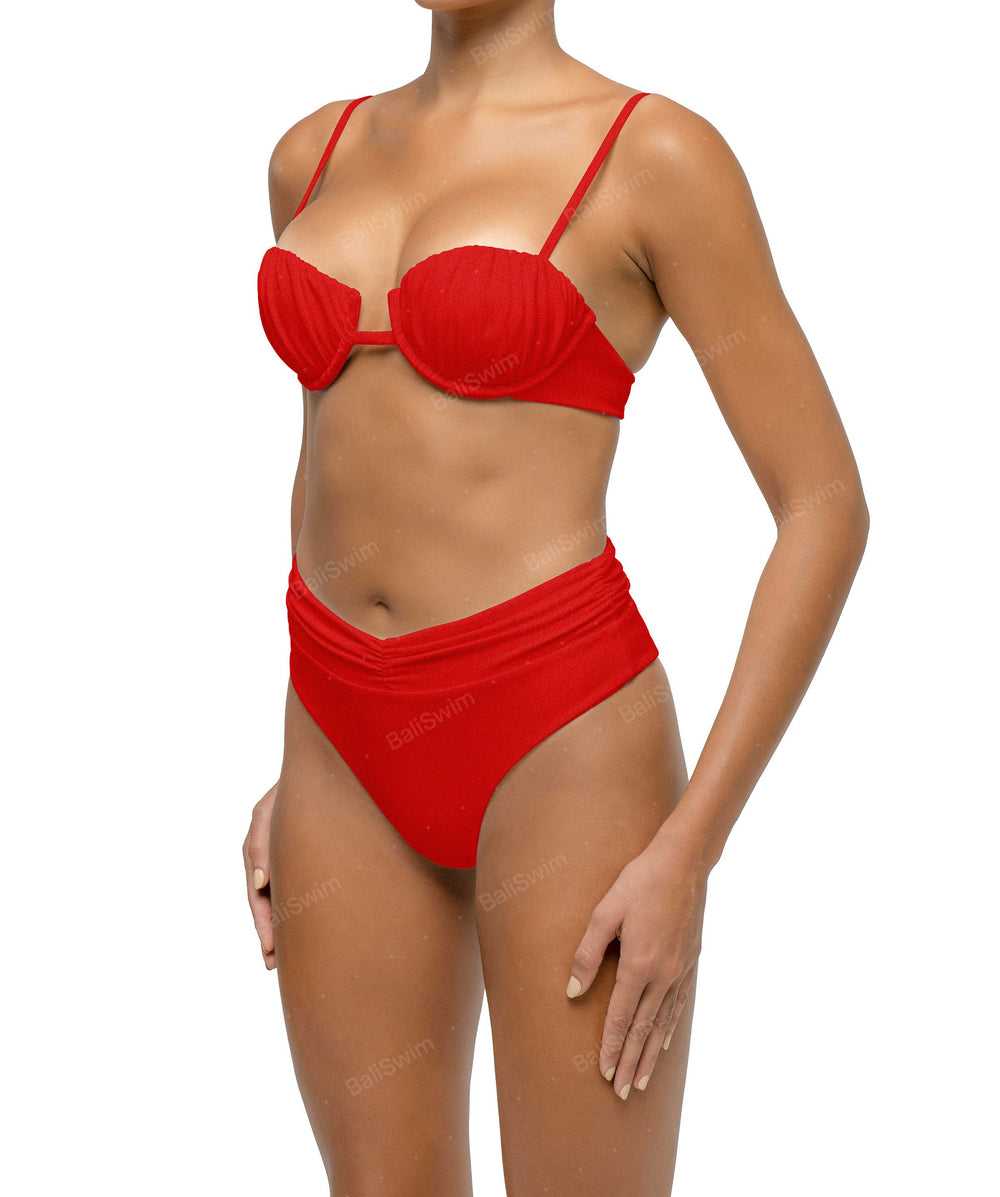 - Detail Feature: Balconette bikini top, Bust gathered detail, Fixed padding with underwire, Adjustable Straps, Clasp closure