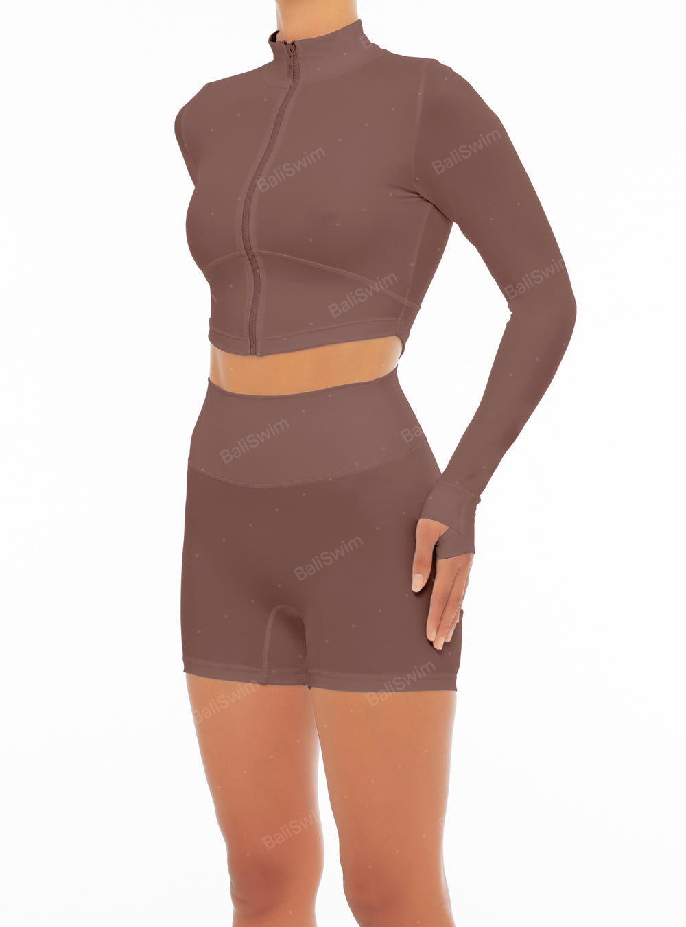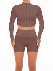 - Detail Feature: High neck,Full front zipper opening,Long sleeve top,Front & back paneled detail