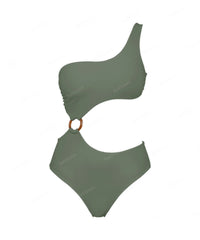 • Detail Feature: One shoulder swimsuit, Connecting O-ring detail, Cut out detail, High rise
