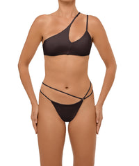 - Detail Feature: Low-rise brazilian bikini bottom with Asymmetric straps and an O-ring detail