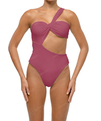 - Detail Feature: One-shoulder one-piece with bust ruching detail and a high-cut leg