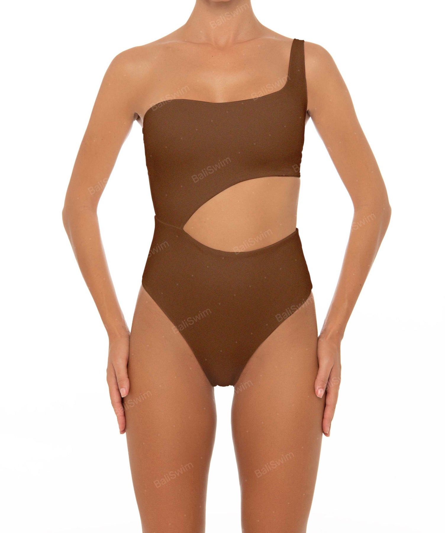 - Detail Feature: Asymmetrical one-piece with a waist cut-out detail