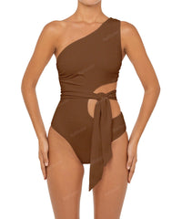 - Detail Feature: One shoulder one piece, Cut out detail, Removable sash