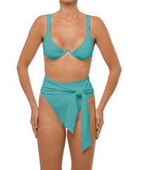 - Detail Feature: High-rise, high-cut bikini bottom with a waist tie detail