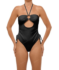 - Detail Feature: Versatile one piece, Adjustable halter ties, Front cutout, Side drawstring, High rise