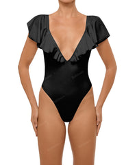- Detail Feature: Flounce sleeves, Low V-neck, Low back, High cut