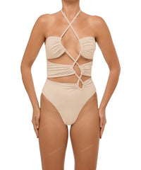 BSWS-S59 Bandeau Halter Asymmetrical Tunnel One Piece