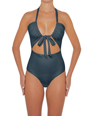 - Detail Feature: Versatile bandeau one-piece with adjustable wide halter ties and a cut-out detail