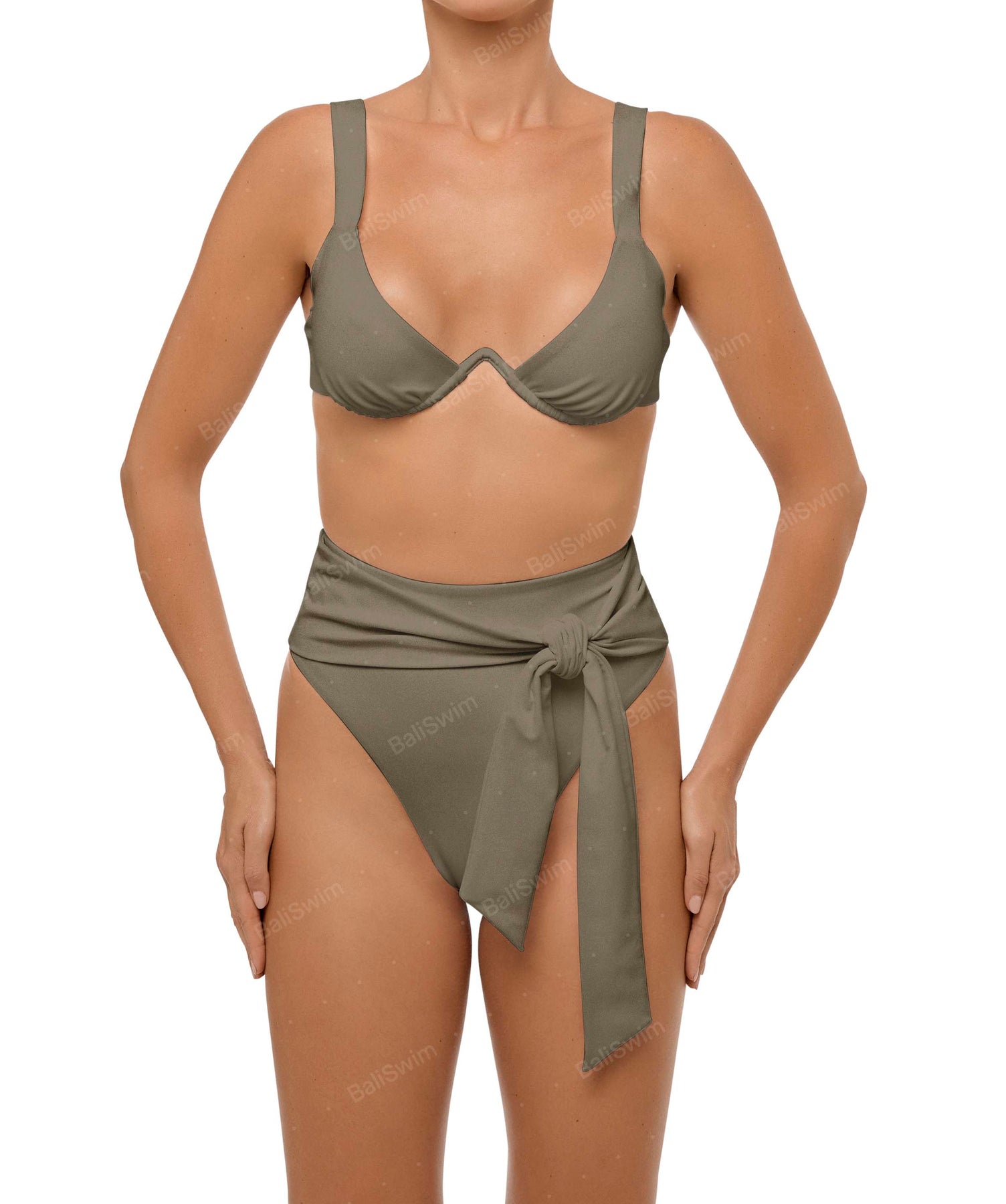 - Detail Feature: High-rise, High-cut bikini bottom with a Waist tie detail