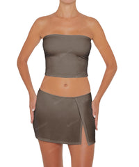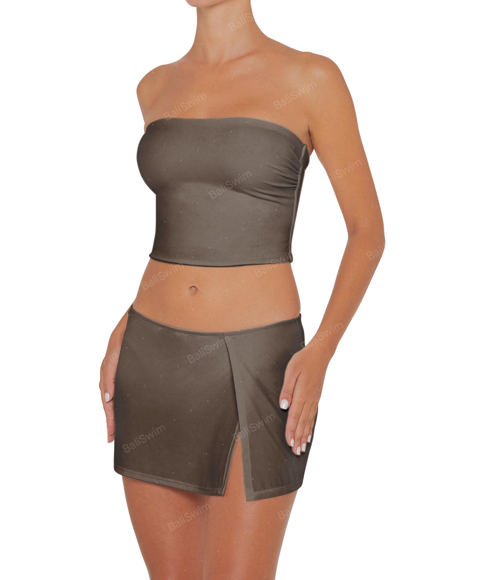 - Detail Feature: Swim skirt bottom, Skirt with basic bikini bottom attached, Slit detail