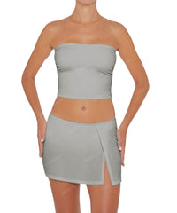 - Detail Feature: Swim skirt bottom, Skirt with basic bikini bottom attached, Slit detail