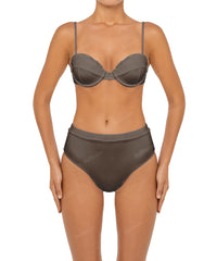 - Detail Feature: High rise bikini bottom, Waistband detail