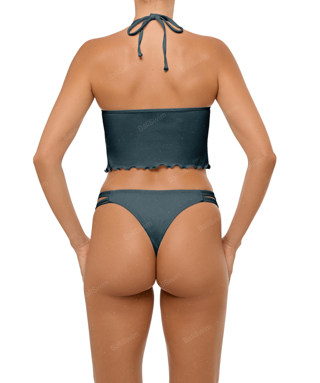 - Detail Feature: Criss cross straps bikini bottom, Mid rise, Brazillian style