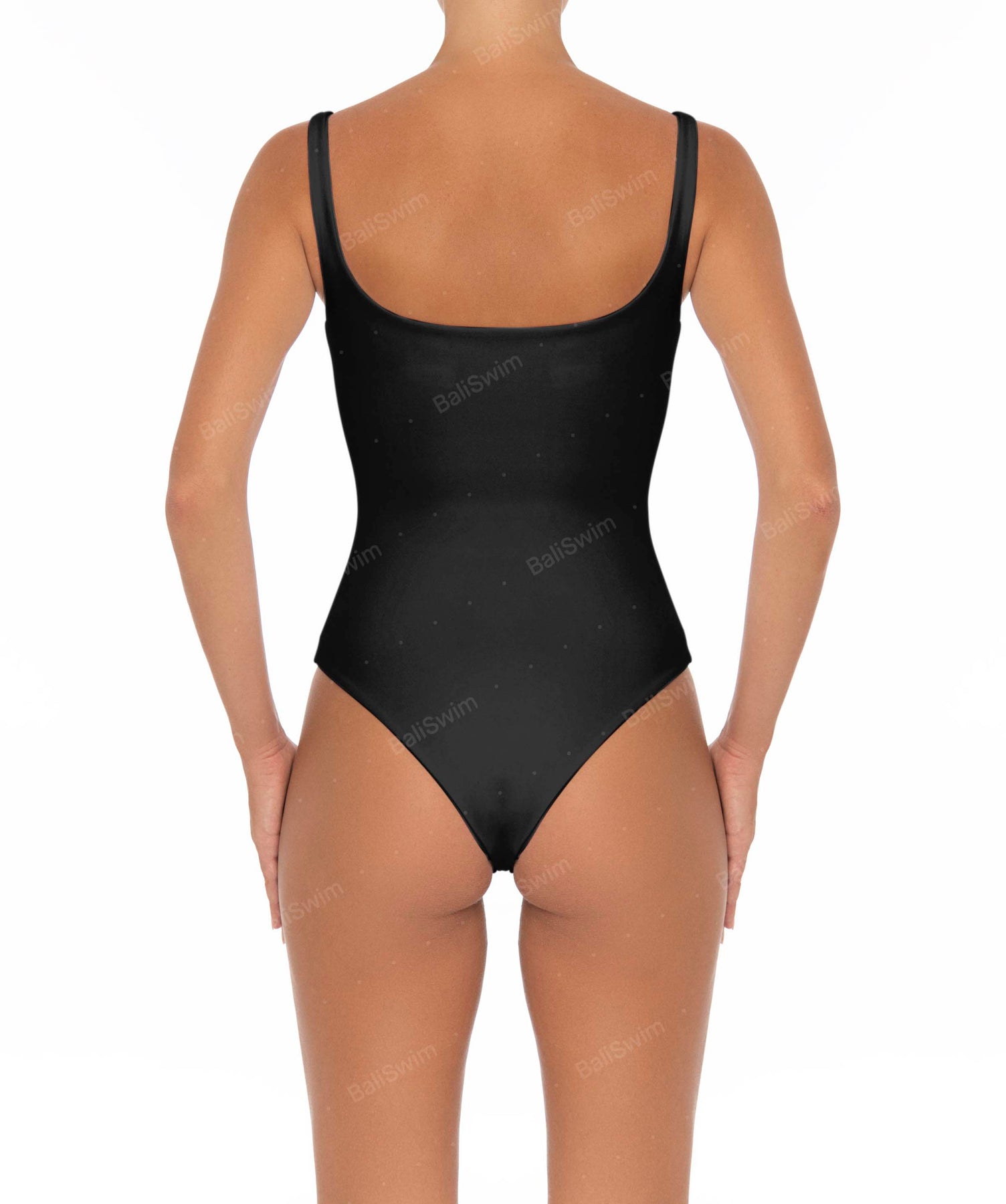 - Detail Feature: Tank one-piece with a scoop neck and a curved square back detail