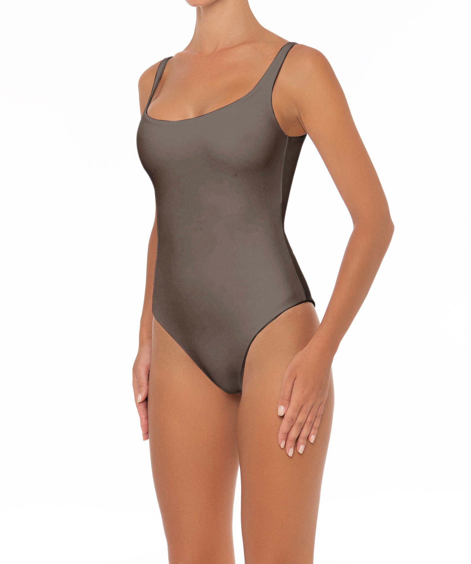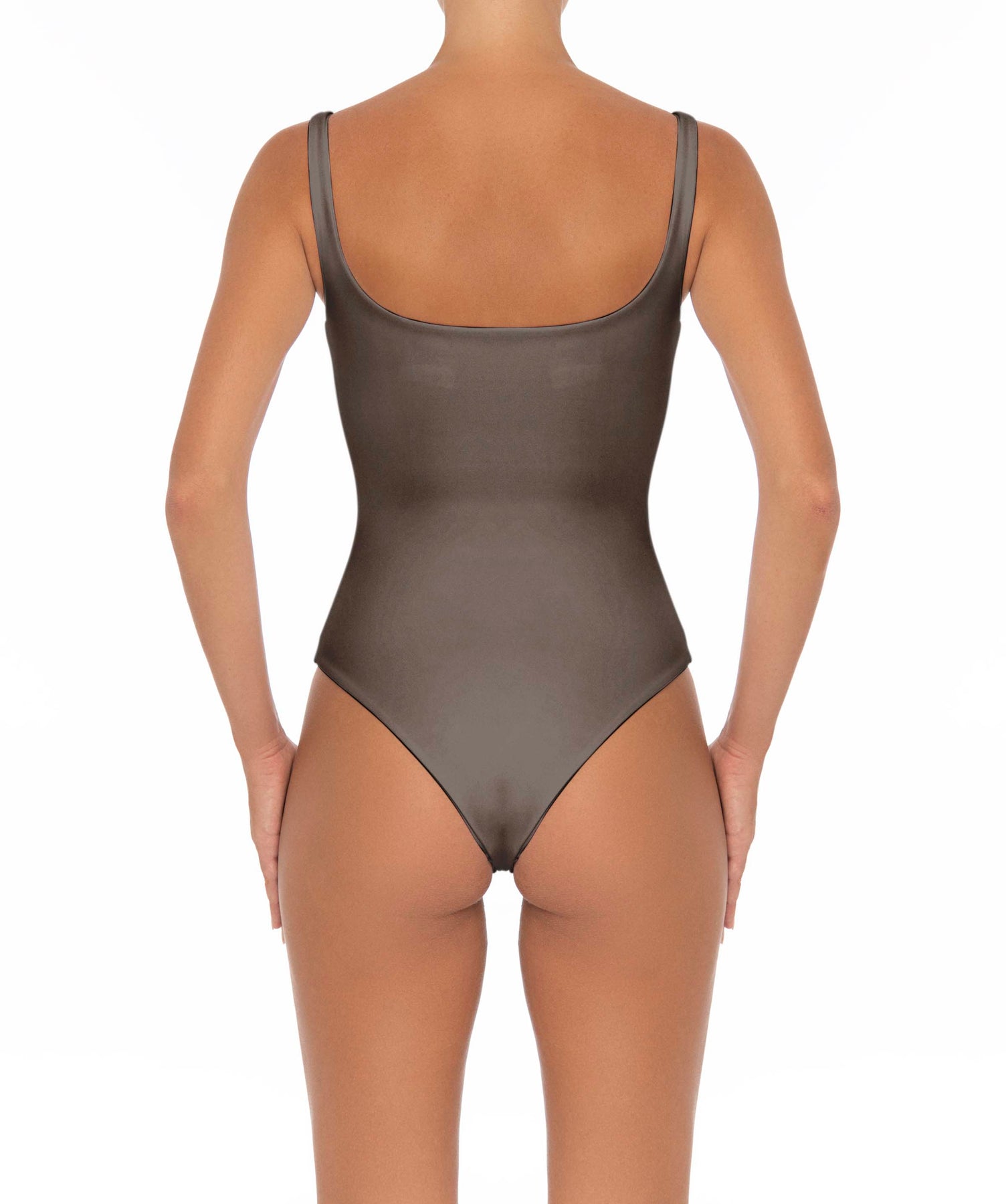 - Detail Feature: Tank one-piece with a scoop neck and a curved square back detail