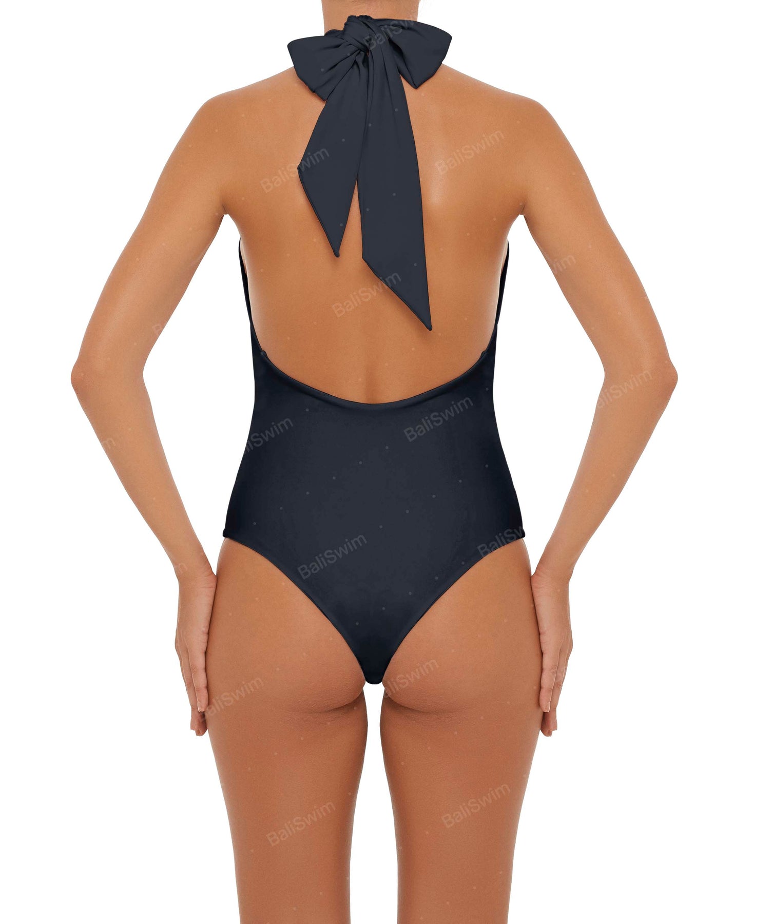 - Detail Feature: Halter crisscross one-piece with adjustable halter ties and a low back