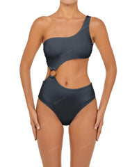 - Detail Feature: One shoulder swimsuit, Connecting O-ring detail, Cut out detail, High rise