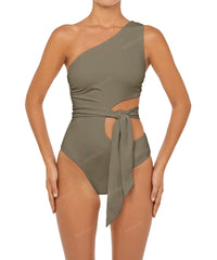 - Detail Feature: One shoulder one piece, Cut out detail, Removable sash