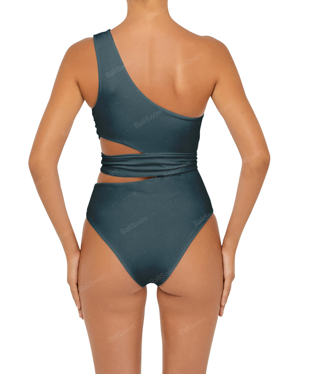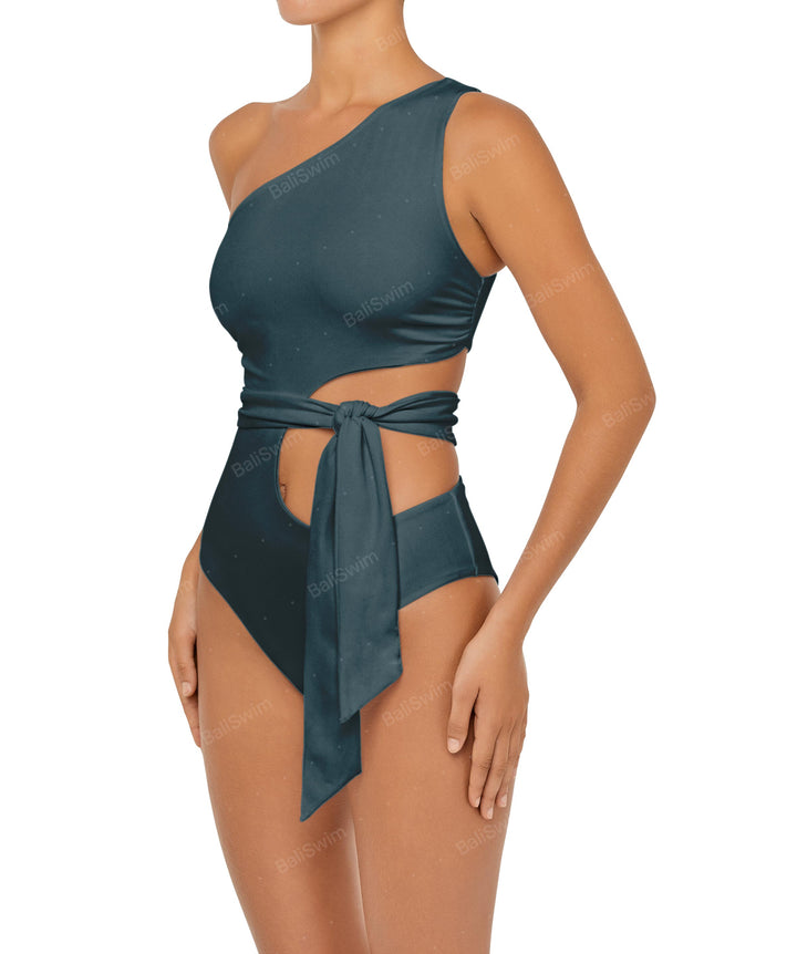 - Detail Feature: One shoulder one piece, Cut out detail, Removable sash
