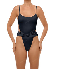 - Detail Feature: Tank one-piece with a wraparound style, twisted front belt, adjustable shoulder straps, and a clasp closure