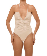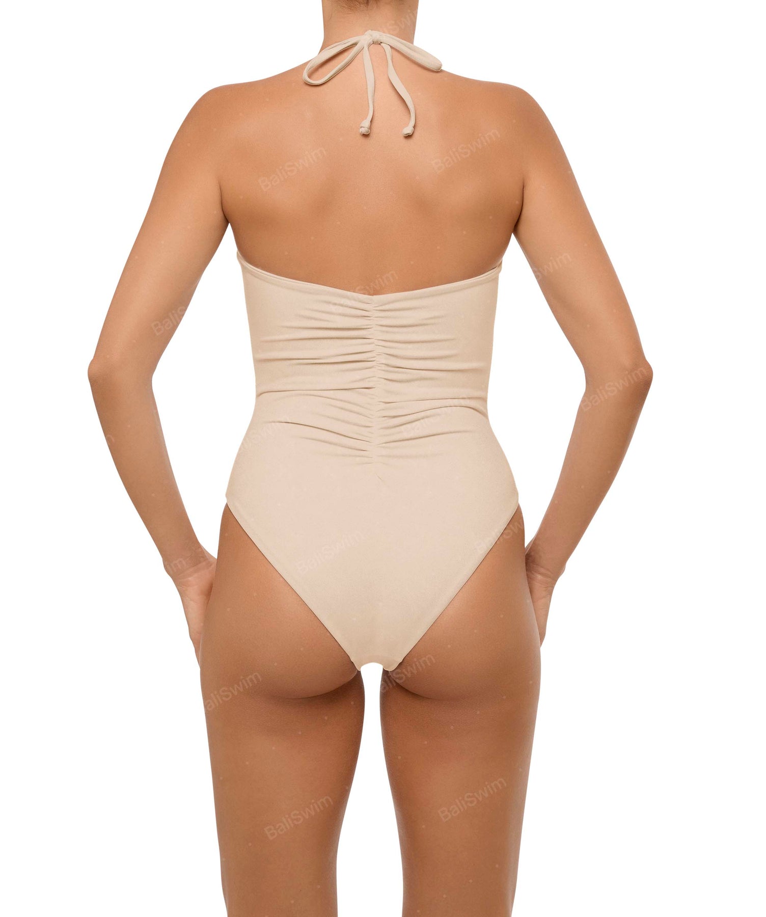 BSWS-S60 Plunge Neck Ruched Front One Piece