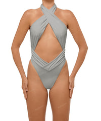 - Detail Feature: Halter cut out one piece, Adjustable halter ties, Criss cross neck, Ruched waist and side seam, Low V-waist, High cut, Low back