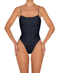 - Detail Feature: Square neckline one piece, with high leg opening, elastic corded straps, and baby lock stitch finishing